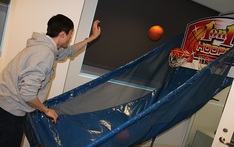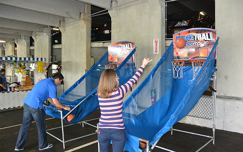 How to play: two players, two hoops, and one ticking clock. Test your skills to see who can withstand the pressure and sink more three pointers before the buzzer sounds. A digital scorekeeper tracks the points and remaining time left before someone is crowned the champ. This is pure, irresistible fun for both adults and children alike!