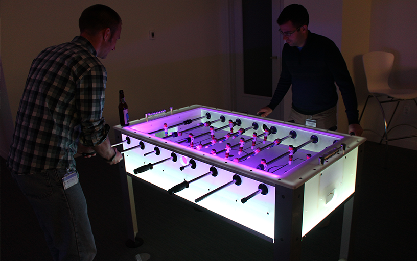 Experience our all new LED Foosball. You will only find LED foosball trough us and we promise your arcade event will never be the same! All games can be lit color of your choice and can also be easily branded with vinyl graphics. Light up the night and your next event with this new twist on a traditional arcade.
