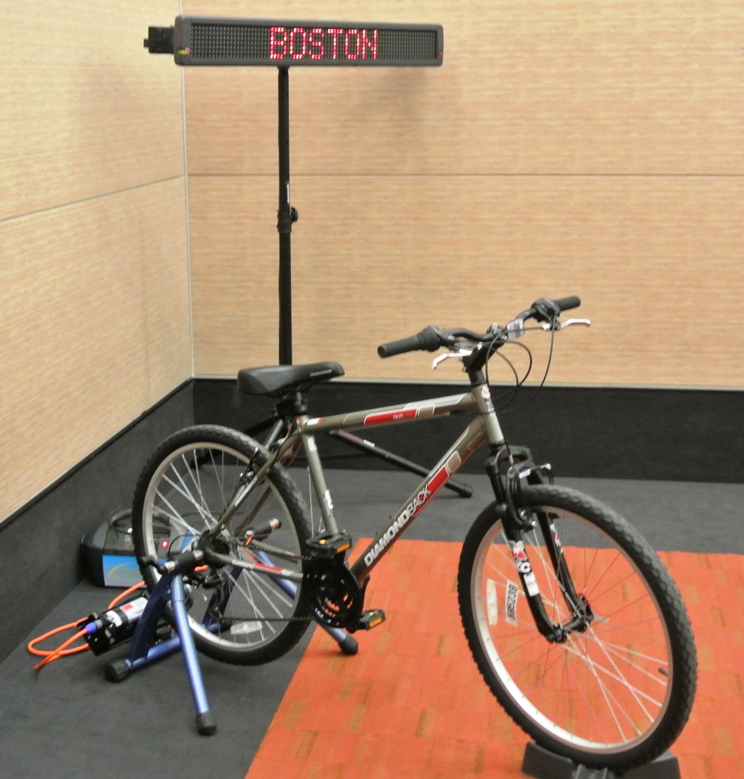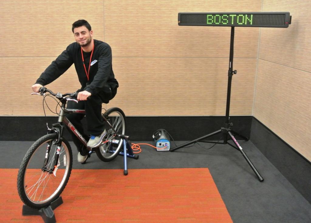 Human Energy Bikes convert human pedal power into real electricity. The pedaling cyclist actually powers the scrolling digital sign to display your custom message. This is great for tradeshow booths promoting green awareness and energy efficiency. Custom signage and messaging available.
