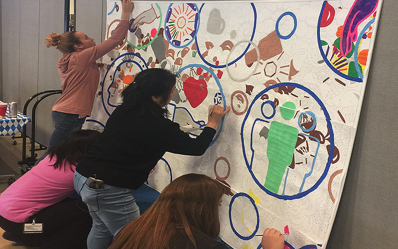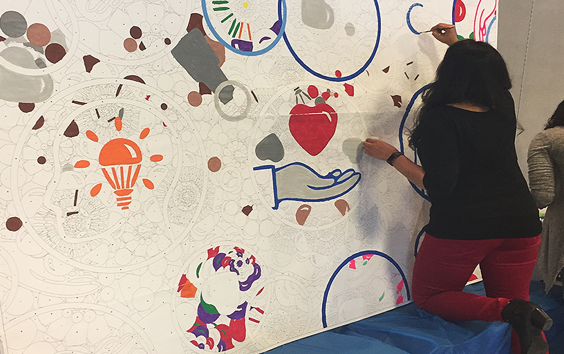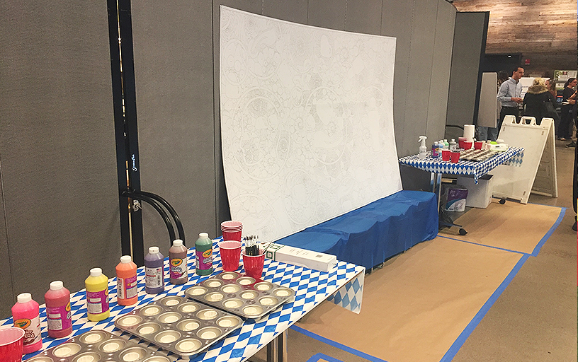 Grab a paintbrush and get ready to unleash your creativity! Collaborate with your peers to work together to finish a beautiful mural that can be customized to fit your event with any theme or your company logo!