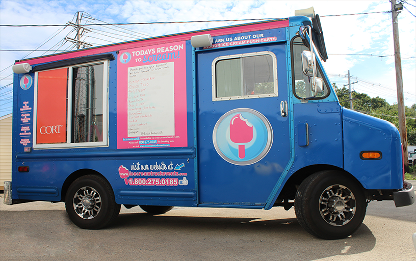 Ice Scream Social is our mobile ice cream service offering a tasty addition to your next event, fundraiser, appreciation day, product launch or celebration. Our mobile ice cream parlor is nostalgia frozen! From ice cream sandwiches to creamsicles to fudge pops and even those character pops with the gumball eyes, we have you covered. Everyone’s favorite ice cream novelties are sure to put a smile on anyone’s face. Our mobile ice cream parlor features vibrant graphics, chrome rims, music, a light package, and branding options so we make you look good!