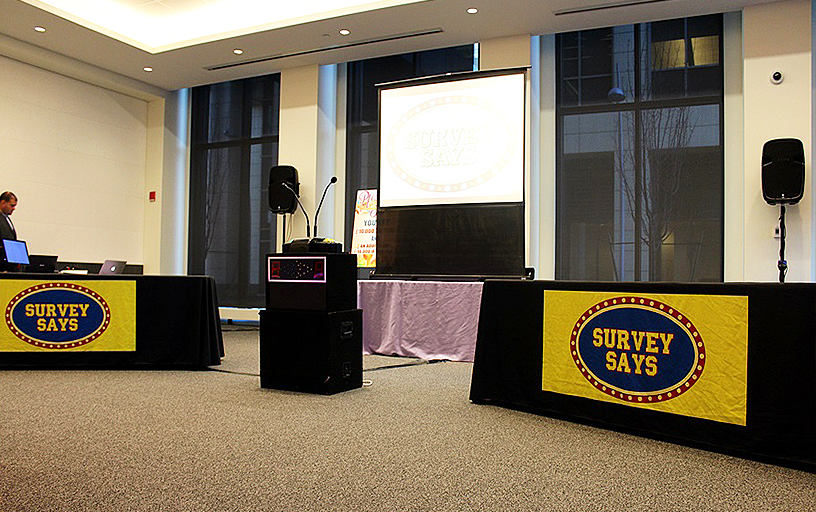 Much like the Family Feud style game show, we would like to present Survey Says!! A 10-person interactive, customizable trivia show, makes for a great form of entertainment. This game show is perfect for team building! A great recreation of the popular TV game show complete with host, lock out buzzer and a giant projection screen, the Family Feud game show will leave guests thinking and strategizing to beat out the other team with fast hands and the number one answer!