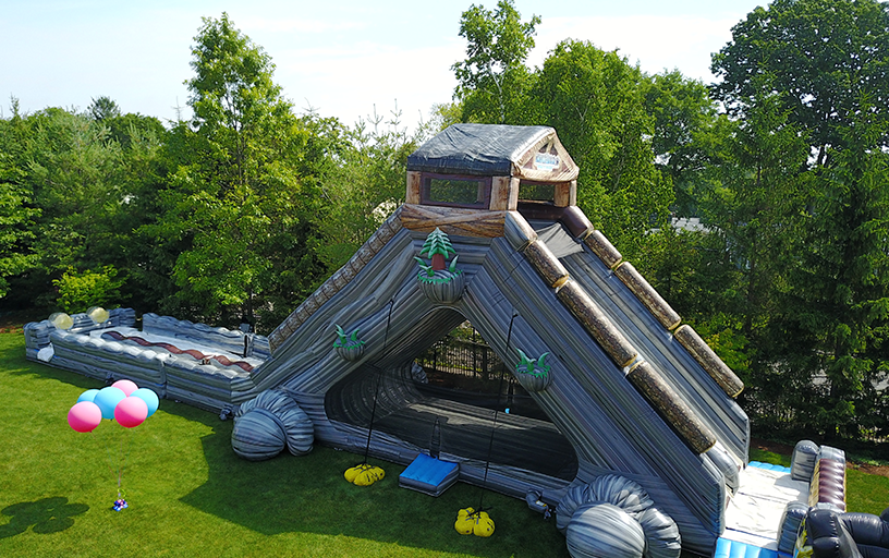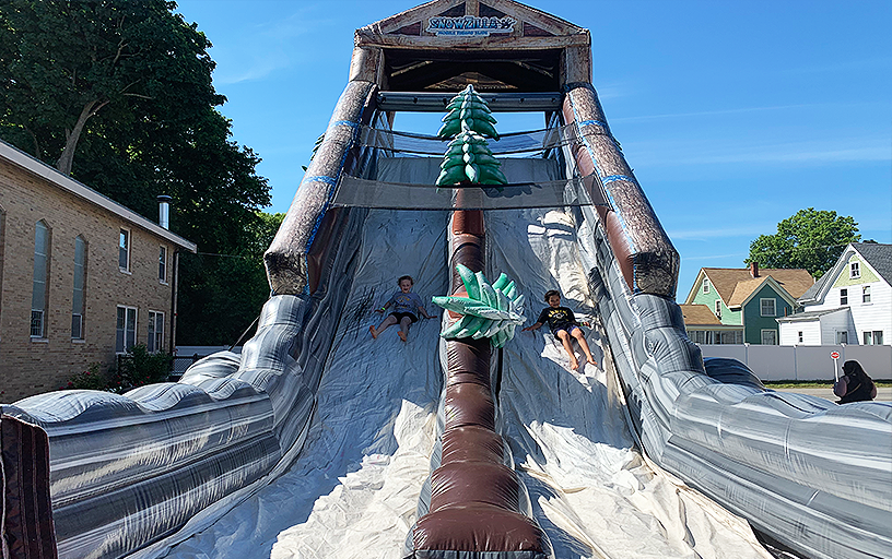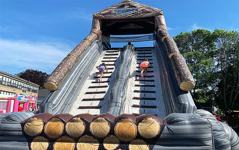 This inflatable winter themed slide is made for adults and children and is perfect for simulating a slide down a snow covered hill when winter conditions are not available. This is a massive attraction where riders slide to the bottom of the slide. It is a high throughput piece and is the only one in the United States. It has tremendous wow factor and for many sliders, resembles sledding down a hill. Snow tubes are not provided with this attraction.