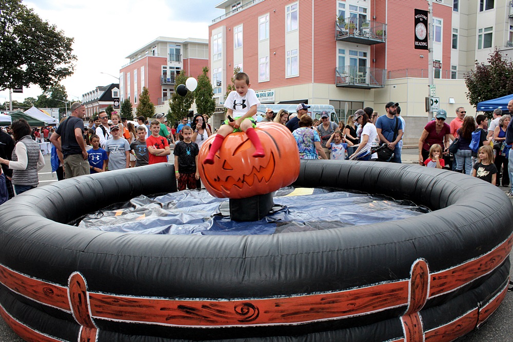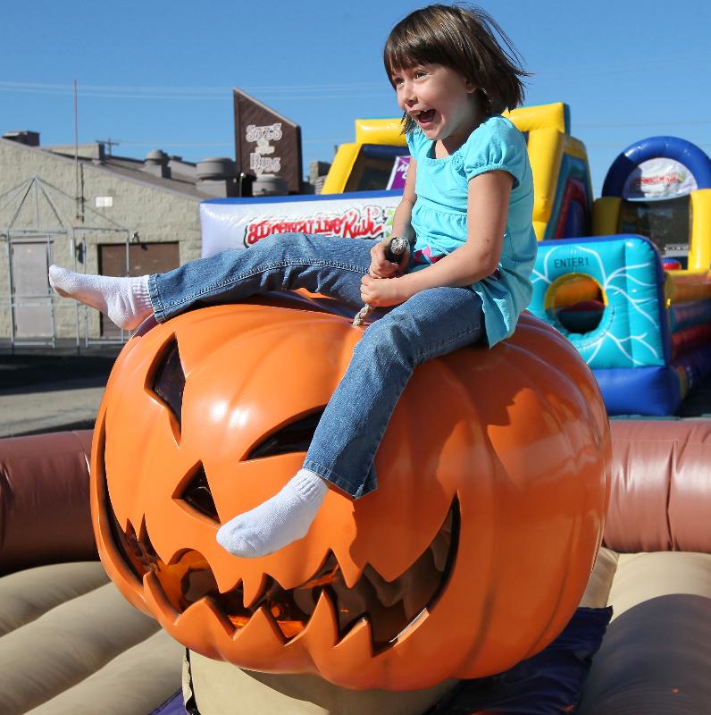 The same crazy fun of a mechanical bull...a spooky twist for Halloween! The mechanical pumpkin comes with our custom printed graphic inflatable bed to catch your gremlins and zombies as they fall of the spinning jack-o-lantern!