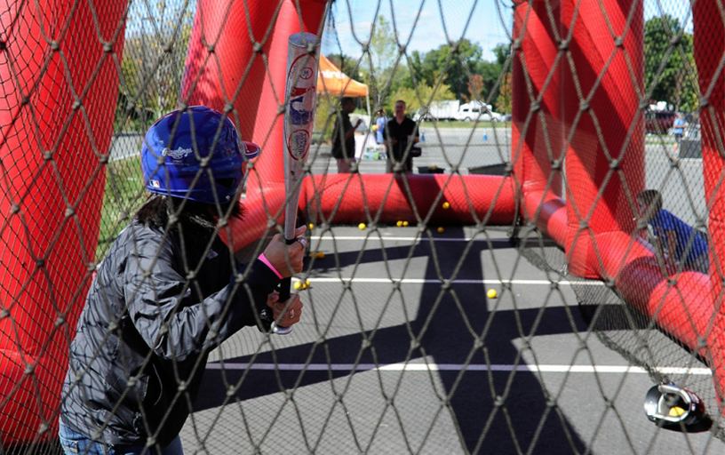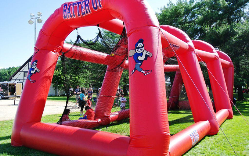 Swing for the fences with our Batting Cage. This inflatable batting enclosure features a professional pitching arm that controls the speed of each ball pitched, ensuring a safe swinging environment. Complete with home plate, baseball bats, and helmets, this Batting Cage will create instant fans ready to cheer the players on! A guaranteed grand slam!