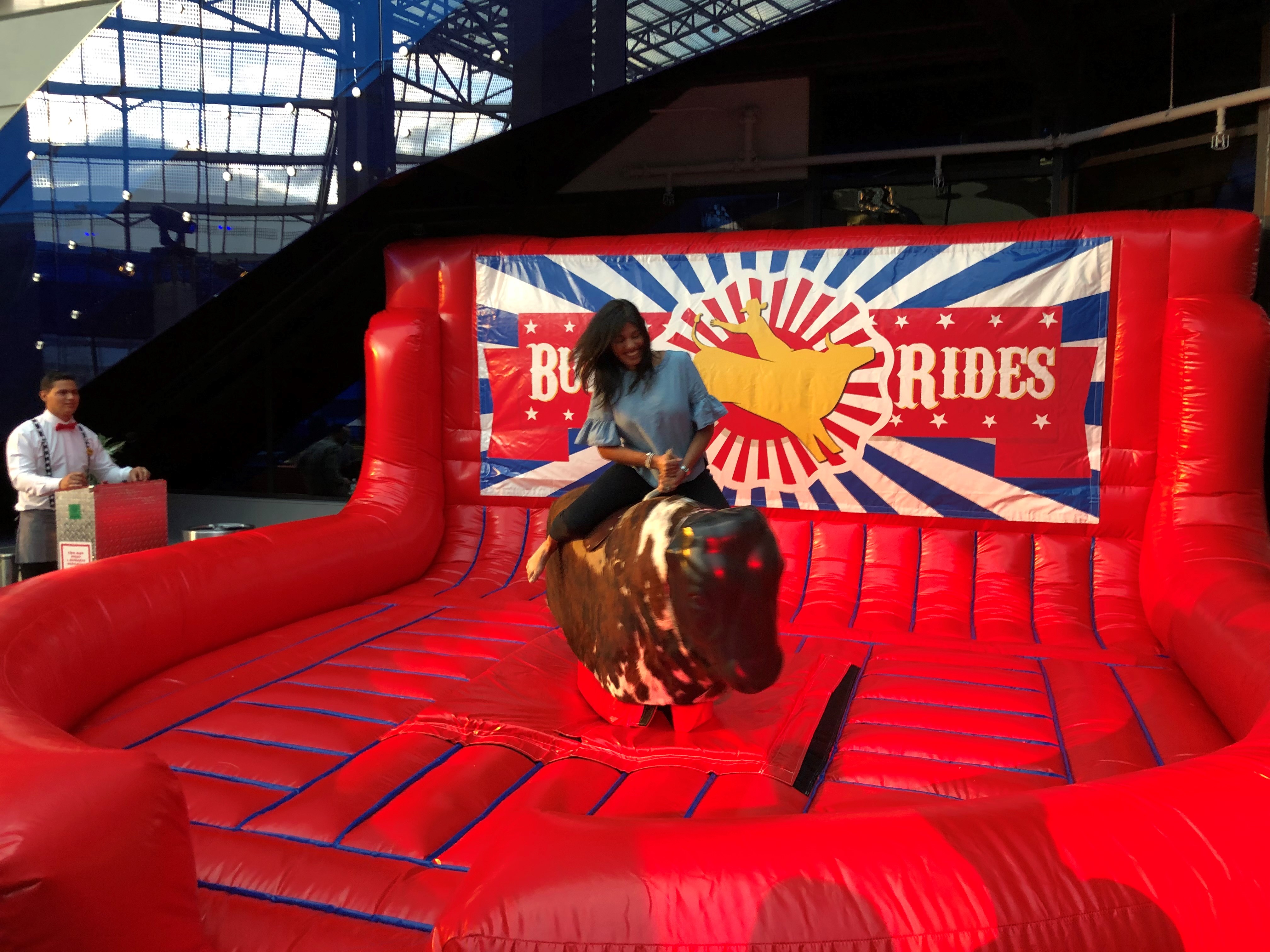 Ride em' Cowboy! All the excitement of an authentic rodeo and much more. Contestants sit on a padded bull surrounded by an inflatable mat, while the operator makes it twist, turn, buck and jolt. Hold on for the ride of your life because the longest time wins a prize!