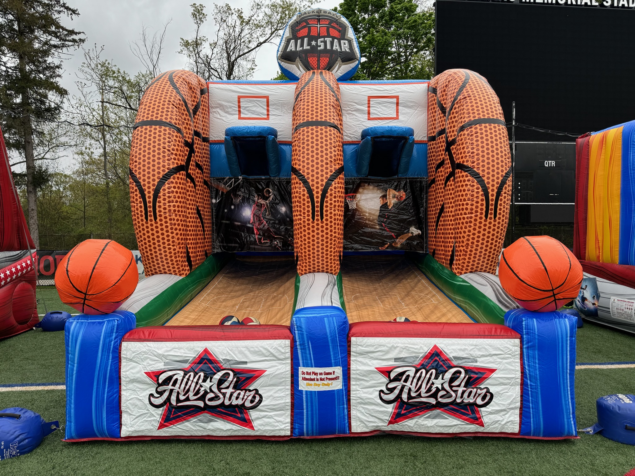 The World's first true interactive basketball game! Players must score all their colored balls on the opponent's side within 30 seconds to win. The action heats up when you have to clear your opponent's balls, and can't shoot your own. Truly like real NBA full court press action, this game is fast and frenzied, and lots of fun. Can be quickly converted to standard basketball shots for single action play. Inflated hoops are durable and very effective.