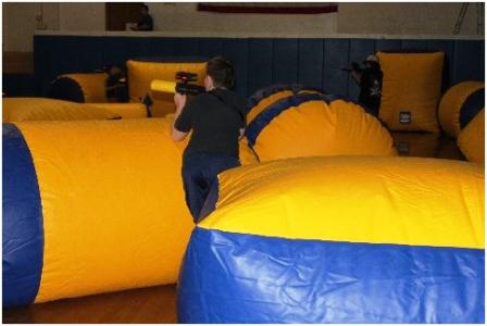 Experience the latest outdoor craze, a 12 player laser tag set up with inflatable bunkers and sound. The games can last between 3-5 minutes for maximum throughput. We can customize the set up size and keep score digitally.