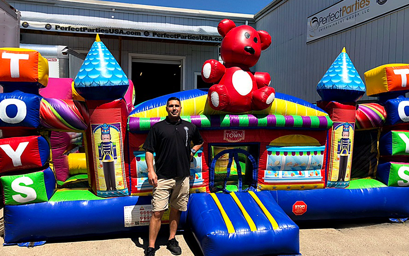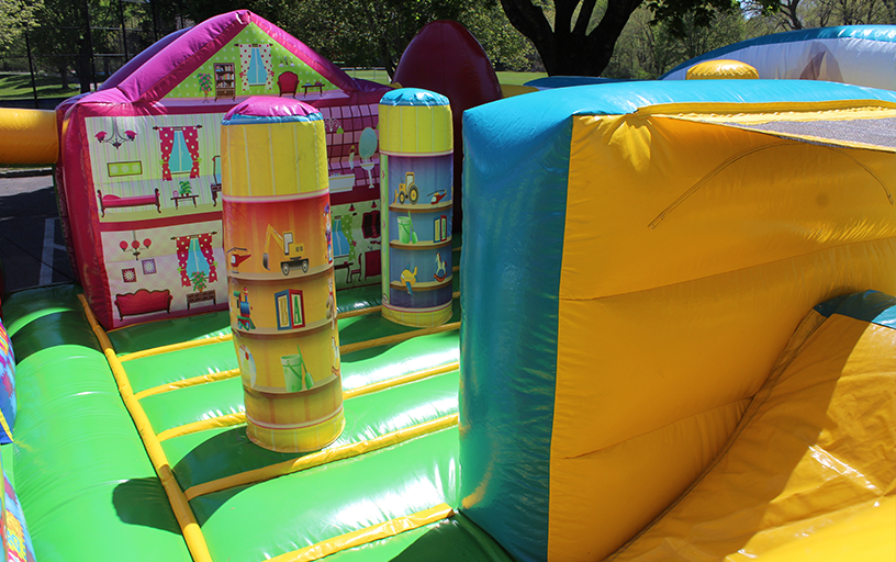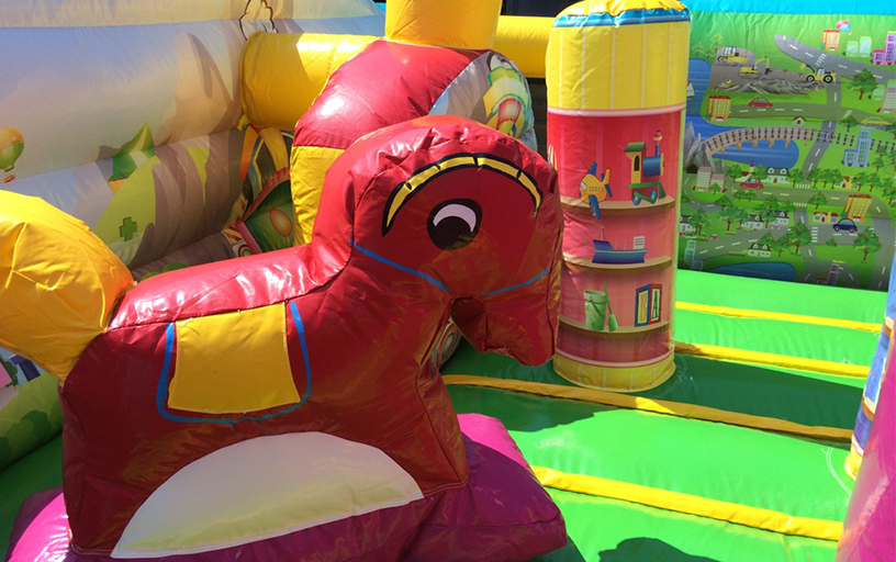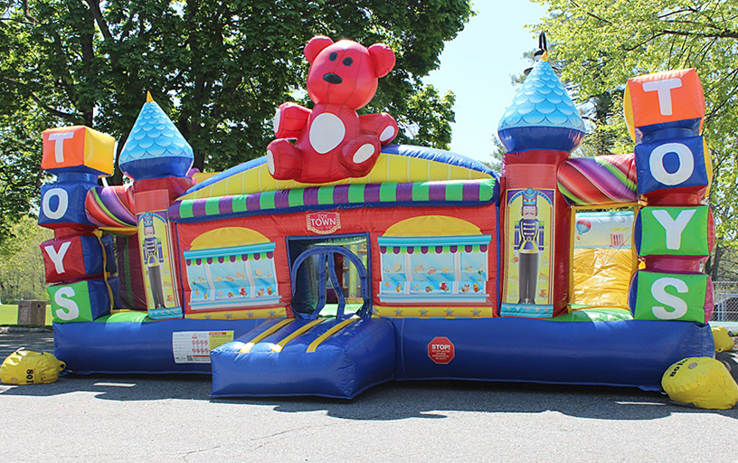 Brighter! Happier! and Cheerier than any toy store in England. The Toy Town Playland is perfect for children at any event. Featuring inflatable versions of classic toys such as a rocking horse and building blocks. This playland also features small slides and miniature crawl spaces to make for the perfect attraction!