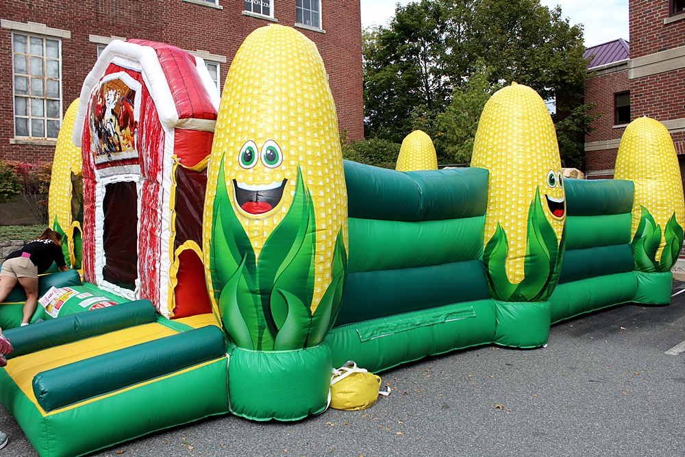 The Corn Maze Obstacle Course is one of our newest interactive attractions! It has a fun barn yard /corn theme that makes this obstacle course great for all the fall festivities. Perfect for large events, the Corn Maze has inflatable pop-ups, crawl throughs, and plenty of excitement for all your guests. Reserve the Corn Maze Obstacle Course today!