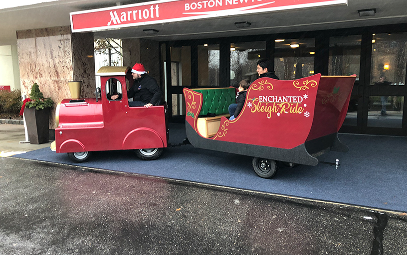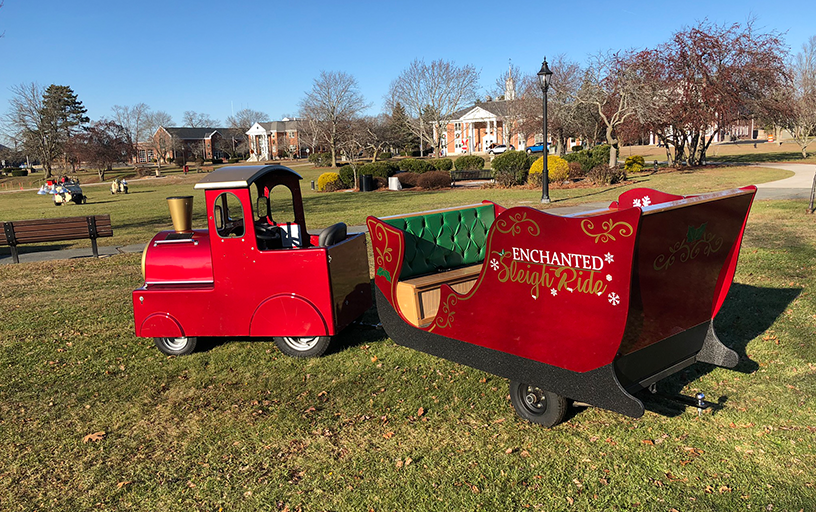 No need for horse drawn sleighs at your event….Introducing the Enchanted Sleigh Ride. The Enchanted Sleigh Ride give you a feel of a classic horse drawn sleigh ride along with a trackless train ride. The Enchanted Sleigh Ride can accommodate 4-6 guests at a time. This is the perfect winter wonderland touch for your holiday event.