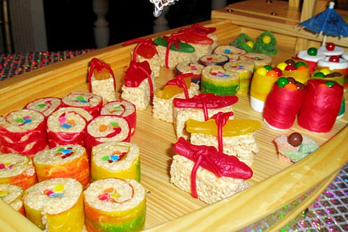 Experience what happens when doughnuts, Rice Crispy Treats, sponge cake and fruit roll ups meet an authentic sushi roller for the latest party desert. Our sushi roller makes hundreds of pieces over a 4 hour period. Ask about serving the candy sushi with chopsticks, and chocolate dipping sauce instead of soy sauce.