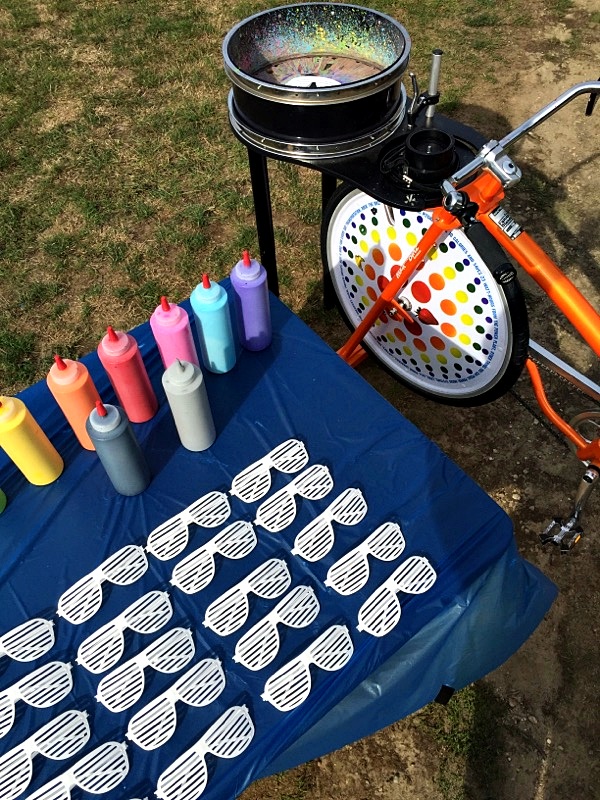 An all-time carnival favorite, you can custom make your own art creations using drop dabs of non-toxic color paint on stunna shades. Once the drops are placed, the stunna shade is then spun into action creating a really cool, out of this world, colorful creation!