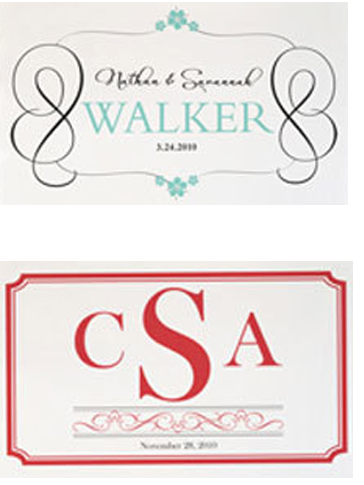 A goofy grin, a silly pose and...a beautiful, blushing bride? Absolutely. Imagine all the fun you'll have with a personalized photo backdrop at your wedding reception!  Select one of six chic designs in the color combo of your choice. Personalization options vary by design. Depending on the design, your backdrop can be personalized with the couple's first names (maximum of 12 characters per name), last name (maximum of 12 characters), event date and/or monogram.  Package comes complete with props, photographer and onsite printing.  Your choice of color or black and white and all photos in a cardboard frame.