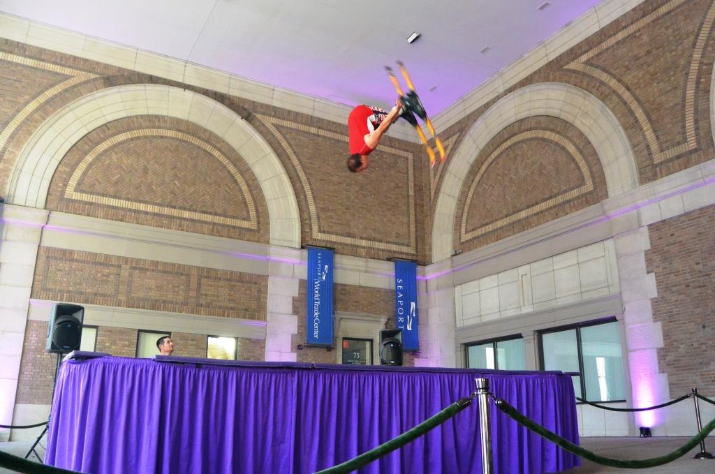 Amaze audiences of all ages with our talented, high flying team of trampoline acrobats. They will leave you speechless. Tricks include triple flips, tricks with skis and snowboards, and more! Package includes 1 Trampoline, 2 artists, and all accessories.