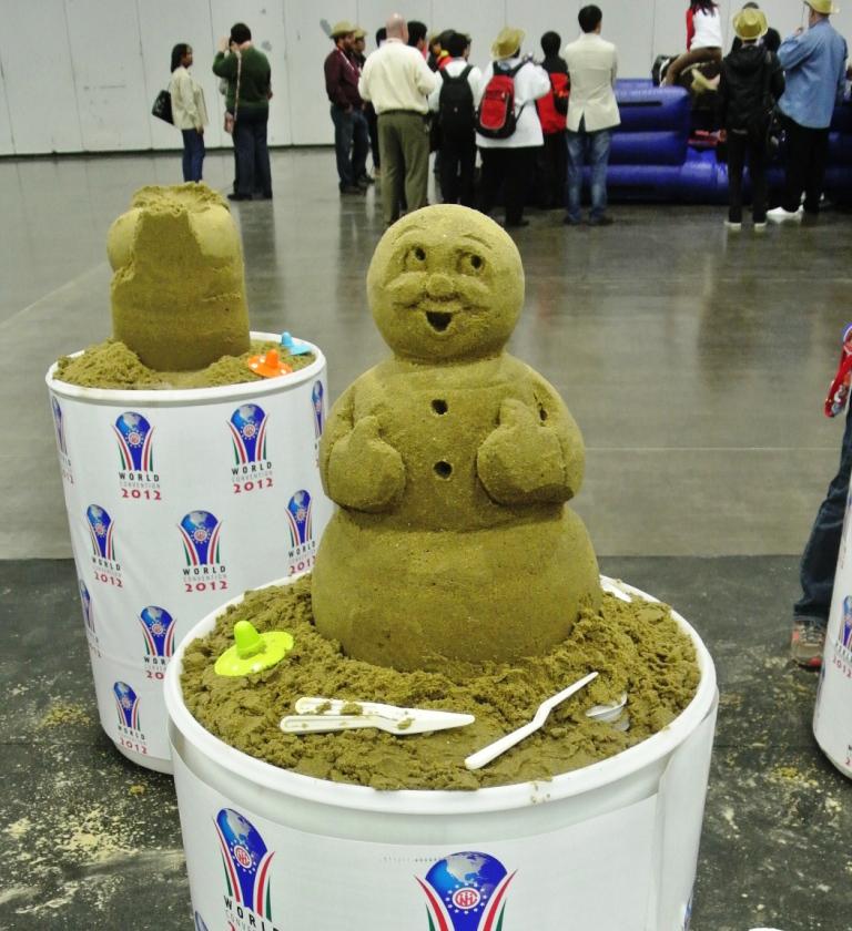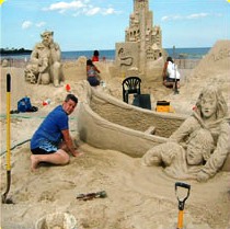 Add unique flair at your next event with a customized sand sculpture. Whether it is a corporate logo or traditional sand castle, our team of sculptors guarantee to be a huge crowd favorite. Our sculptors are some of the best in the world and their final product will leave you speechless. Typically the sculpture is started hours before your event with the finishing touches being done during the peak of your event. We supply the sand and finished product, you supply the idea. For additional fun ask about our sand sculpting team building programs complete with team challenges and mini sand boxes.