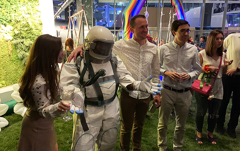 The Astronaut Bubble Man roams dreamlike through the space, leaving fields of bubbles in his wake. A genuine delight for guests, young and old alike!