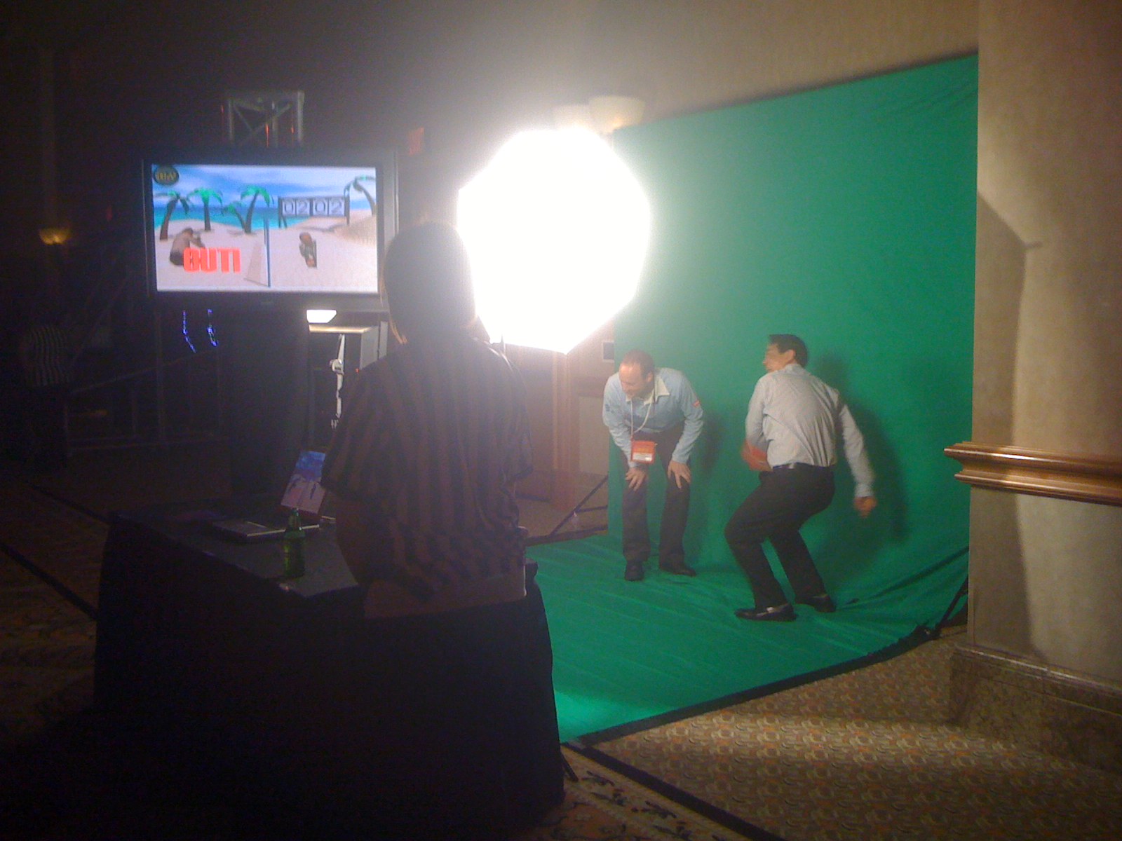 We put you and your guests in a live interactive video image on a sandy court for a seaside match of all matches in our version of Virtual Volleyball. Bump, set and spike your way to victory, but don't hit the ball too hard or you'll side out and forfeit the winning title! Sunscreen is optional!