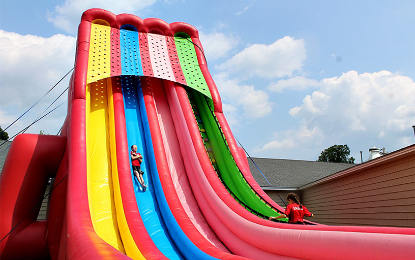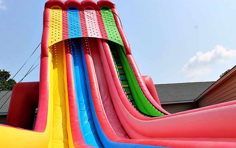Get ready for a triple good time with the all new Drop Out. This slide will make you triple take…. 3 lanes for 3 times the fun and 3 times the throughput. It has the look and feel of a State Fair Super Slide and is a guaranteed crowd please for any fair or festival!