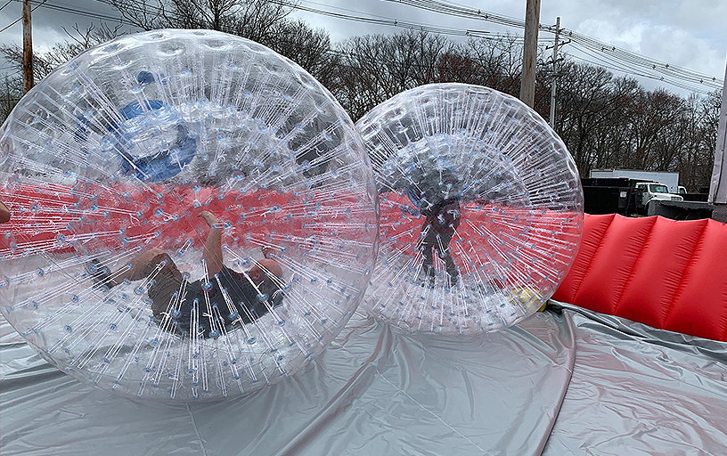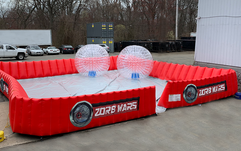 Players go head to head in the arena after climbing inside the Zorb balls. Try to get your opponent to lose their stance by rolling at their zorb with your zorb! If you can wear them out and get them off their feet, you win and your guests will love the hilarious entertainment!