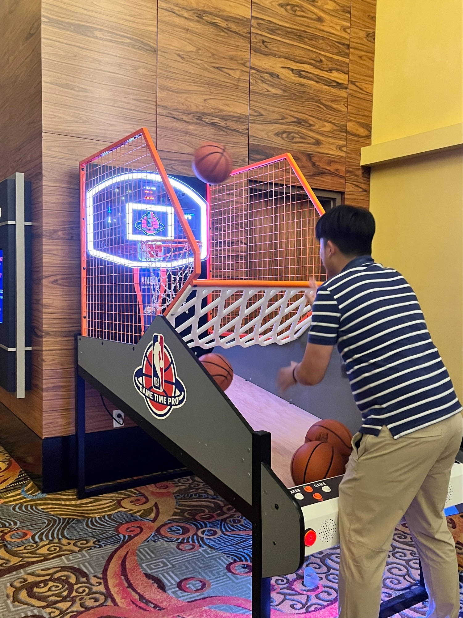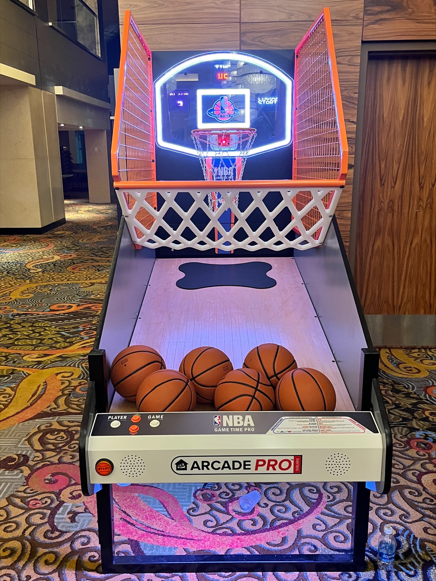 NBA Game Time Arcade has 4 player settings: arcade, money ball, pig and last shot. This game is highly addictive and has impressive lighting and sound effects. Perfect for any game room or glow themed event.
